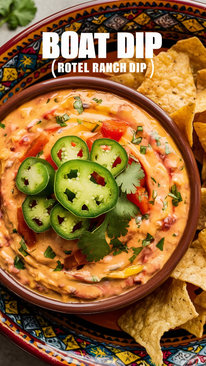 That’s the irresistible charm of Boat Dip, also known as Rotel Ranch Dip. It’s cool, creamy, and bursting with color — the kind of dish that instantly brightens up any gathering. You don’t need a stove, an oven, or even fancy equipment. Just mix, chill, and serve. It’s no wonder this dip became a viral summer classic.