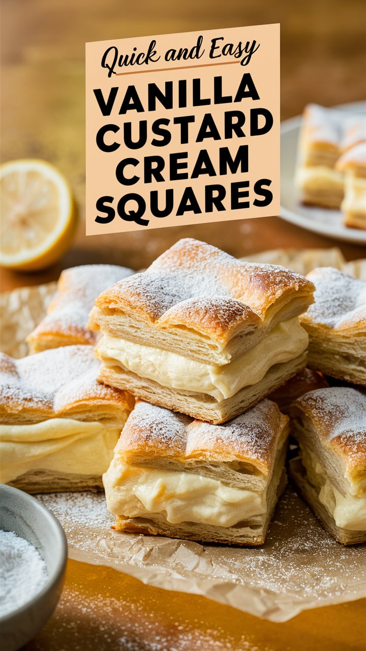 There’s something deeply comforting about traditional desserts—those that don’t rely on trendy ingredients or elaborate presentation, but simply shine through rich flavor, texture, and heartwarming familiarity. Vanilla Custard Cream Squares fall into that timeless category. With their velvety custard center, delicate sponge cake top, and a snow-like dusting of powdered sugar, these squares offer an elegant bite that evokes nostalgia and delivers satisfaction.